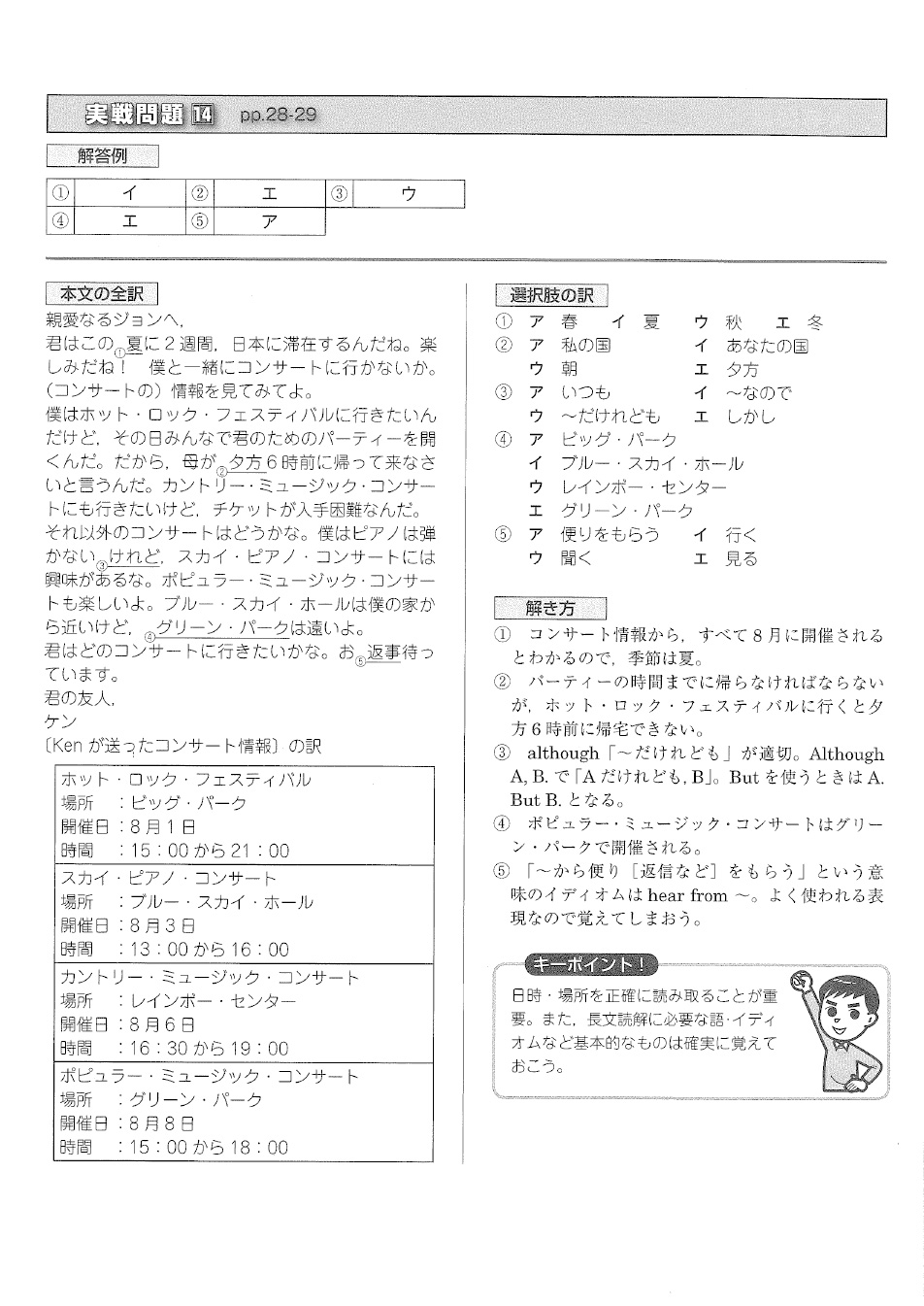 「正答」の他、学習上のアドバイスとなる「キーポイント」や本番に役立つ「得点アップのコツ」等がありますので、解き方・考え方をしっかり身につけることができます。 - 【ポイント③】